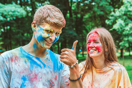 London Ontario, Canada - April 16: Unidentified young colorful people having fun and celebrating at the Festival of Colours on April 16.2016 in London Ontario, Canada as editorial