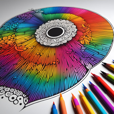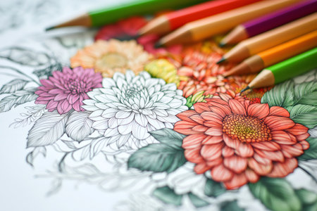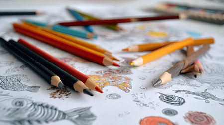 Brightly colored pencils lay neatly beside intricate outlines for children to fill in with their imagination. Perfect for sparking creativity and artistic expression in young minds.