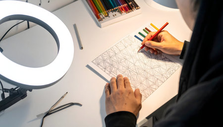 Artist focused on a colorful mandala drawing, ideal for art therapy content. With Generative AI technology.
