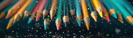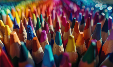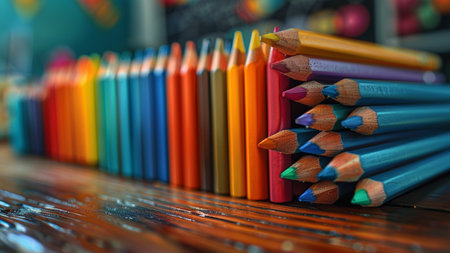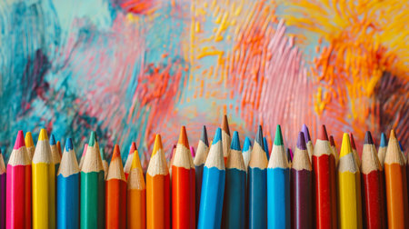 Discover a close-up view of vibrant colored pencils positioned on a beautifully designed artistic background, showcasing the essence of creativity and artistry.