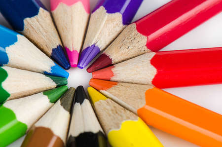 Colorful multicolored pencils on white background. Education, Business and finance concept with copy space. Art