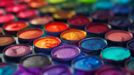 Vibrant colors in a row, crushed particle palette, shiny still life generated by artificial intelligence