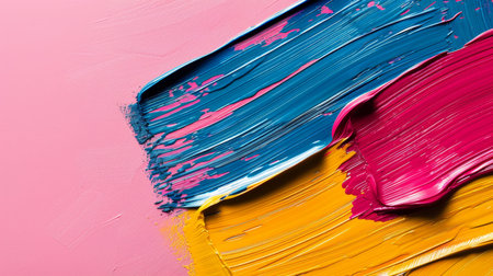 Explore a captivating close-up of vibrant paint strokes that create a dynamic and colorful background, ideal for artistic projects and design needs.