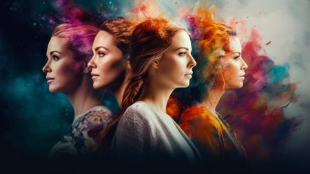 Multiple personality, identity disorder, borderline and Schizophrenia, mental health background. AI generated.
