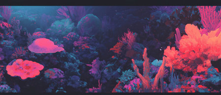 Vibrant underwater coral garden teeming with marine life and colorful vegetation