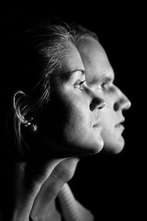 similar faces of young man and woman
