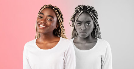 Cyclothymia Disorder. Portraits Of Young Black Woman Expressing Different Emotions