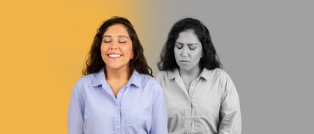 Contrasting Emotional Expressions of Woman on Colorful Backgrounds