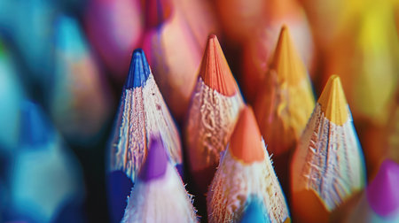 Bunch of colored pencils are showing their sharpened tips, creating a colorful and vibrant design