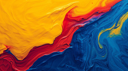 Abstract background of acrylic paint in red, blue and yellow colors.