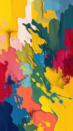 Vivid abstract background featuring bold brushstrokes and splashes of color, creating a lively and expressive visual appeal
