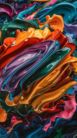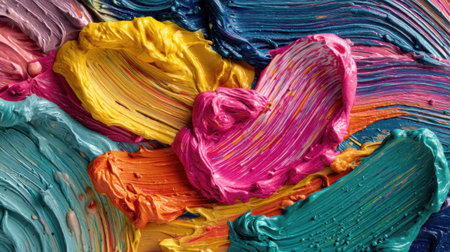 Explore a captivating close-up of vibrant paint strokes that create a dynamic and colorful background, ideal for artistic projects and design needs.