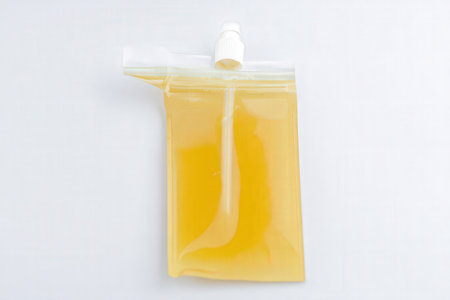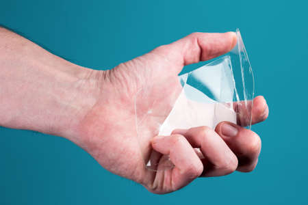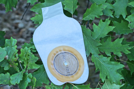 white plastic colostomy bag on a green background