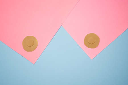 Paper application on a woman's theme. The female breast is stylized. Breast Cancer Communication for Support and Health. Disease prevention concept for october campaign.