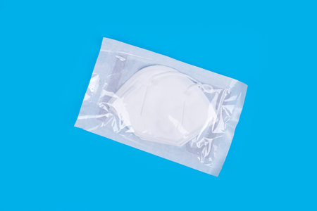 Package of KN95 masks on light blue
