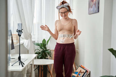Smartphone device shooting caucasian young woman blogger