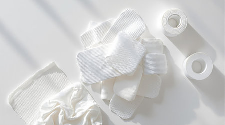 Fresh blood in bandage tape with white cotton .
