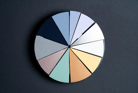 Artistic color wheel featuring warm and cool tones, each segment clearly defined and isolated against a clean white background, perfect for design use