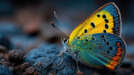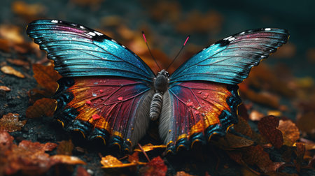 The fragile beauty of a multi colored butterfly in nature macro generated by artificial intelligence