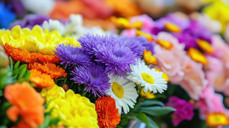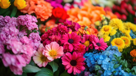 A vibrant display of assorted flowers showcasing a variety of colors and textures. Perfect for celebrating spring, beauty, and nature's elegance.