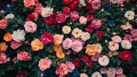 A stunning display of blooming roses showcases a vibrant array of colors, creating a delightful scene full of beauty and nature