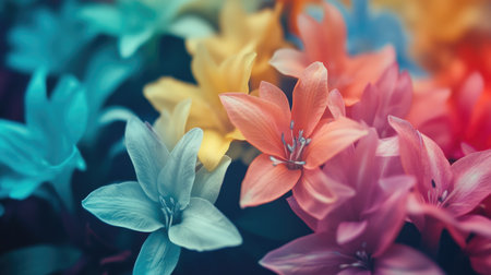 Rainbow flowers, macro photography, illustration