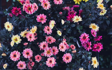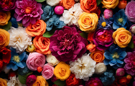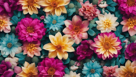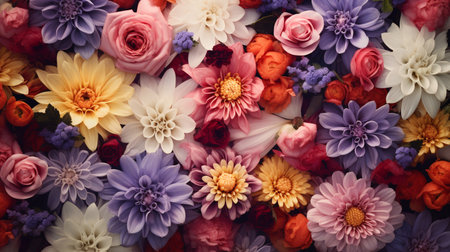 Bright floral background with beautiful, colorful flowers. A beautiful wall of bright, colorful flowers.