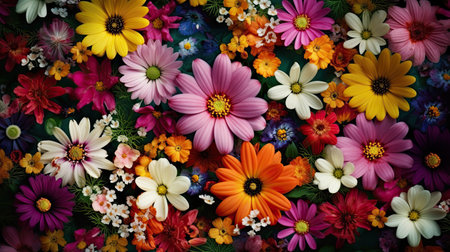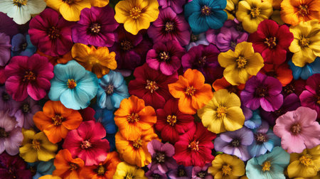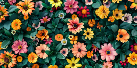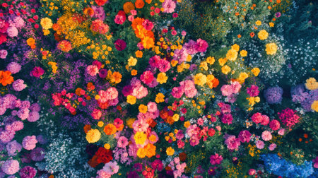 An overhead view of a vibrant canopy of flowers, ideal for a lively spring advertisement.
