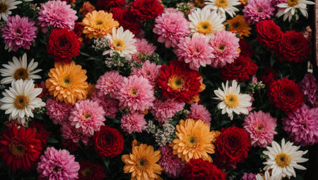 A stunning arrangement of vibrant flowers showcasing a variety of colors and textures. Perfect for decoration, events, or as a beautiful backdrop for any occasion.