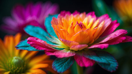 AI Generated. Close up capture of vividly colored flower with impressive magnification in macro photography