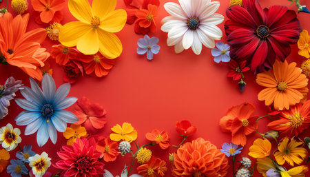 Vibrant border made of assorted flowers against a clean white backdrop