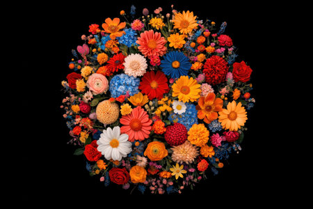 Vibrant bouquet of assorted flowers in vivid colors against a black background, perfect for floral arrangements, home decor, or seasonal celebrations