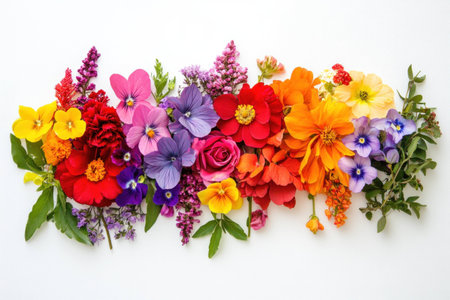 Vibrant assortment of colorful flowers arranged beautifully on a white background, showcasing a blend of nature s vibrant colors and textures, ideal for floral decoration