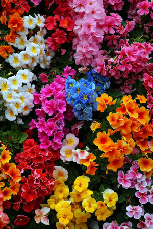 A vibrant wall of colorful flowers in full bloom.