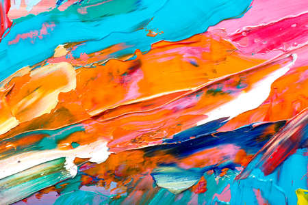 close up of colorful acrylic paint strokes on canvas background