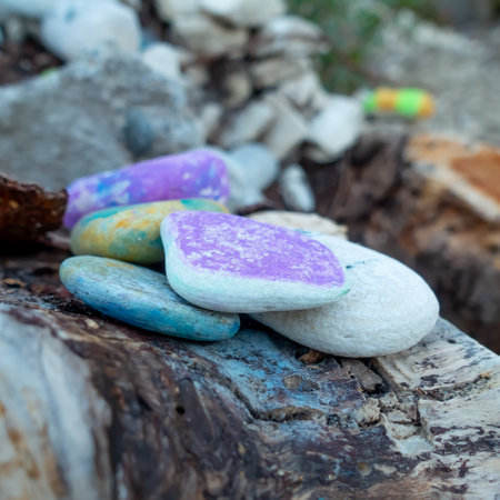 Bright abstract background. Stones painted with paint close