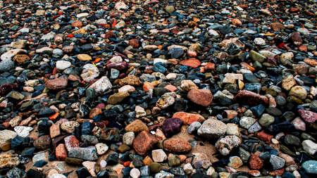 Colorful pebbles on the beach, close-up.