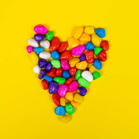 the shape of the heart formed with colored pebbles
