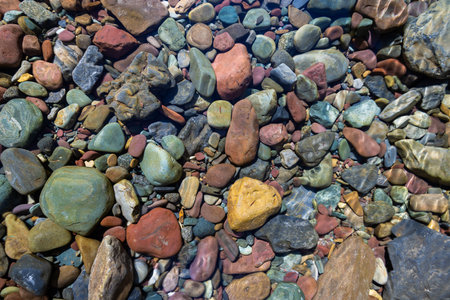 Naturally colorful river rocks under water in Glacier National Park, Montana