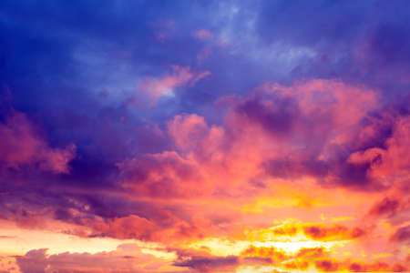 Dramatic bright colored clouds at sunset. Natural texture and background