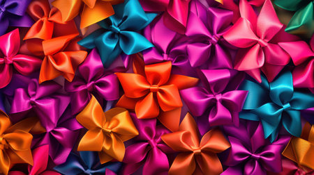 A striking display of bright ribbons and bows intertwines seamlessly, creating an eye-catching pattern perfect for festive occasions.