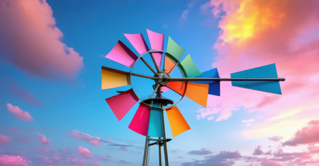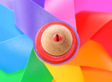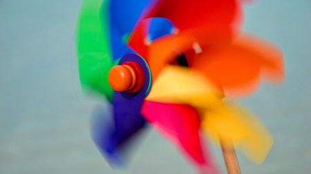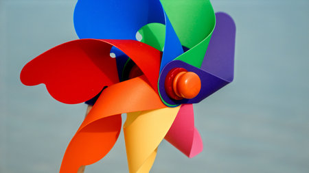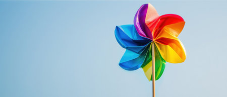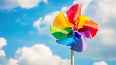 A Rainbow pinwheel spinning in breeze, proud symbol of joy and color