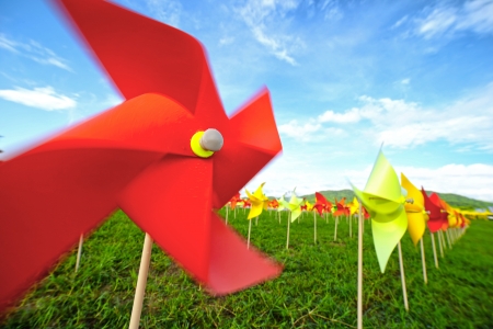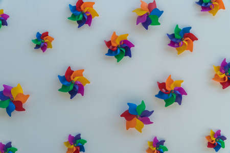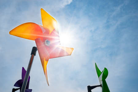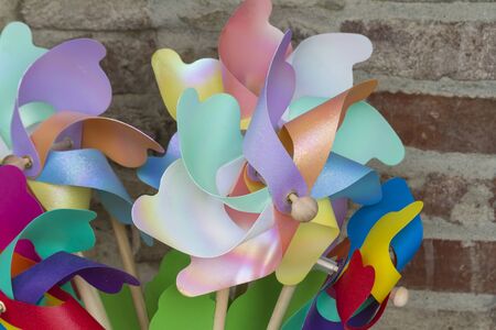 Children's Coloured Windmill Toy in the Wind Abstract Close Up