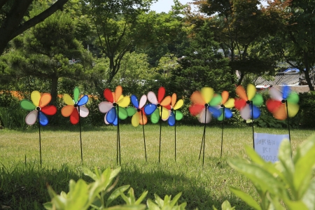 Close up image of colorful paper windmills at Paju, DMZ Imjingak, South Korea