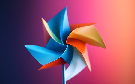 A Colorful pinwheel spinning joyfully, proud symbol of childhood fun and creativity