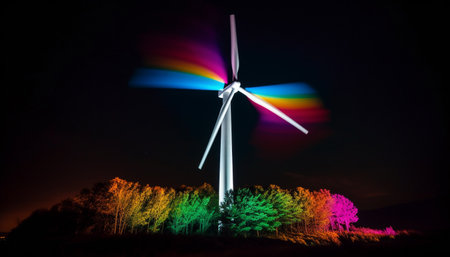 Wind turbines turning in the dark, powering sustainable resources efficiently generated by artificial intelligence