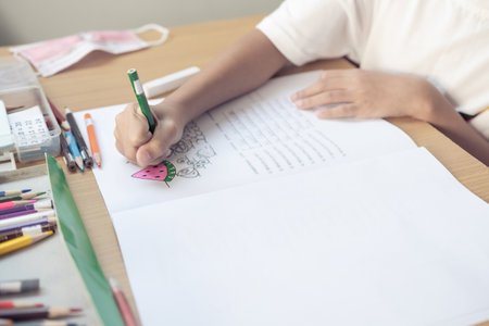The students used crayons pencils to paint on English exercises. At home to practice skills in holiday
