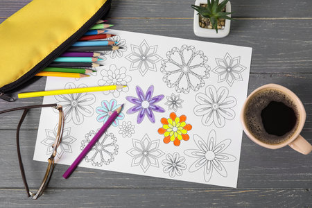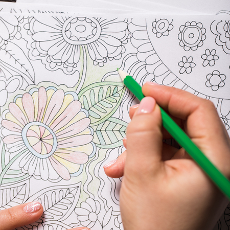 Adult coloring books, new stress relieving trend, mindfulness concept