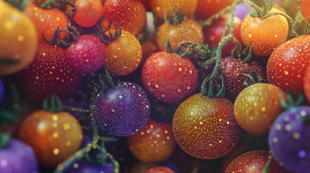 colorful, genetically modified tomatoes arranged neatly, created with generative ai