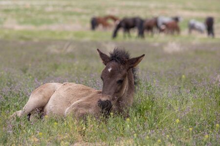 Wild Horse Mare and Foal in the Utah Desert at Sunrise.